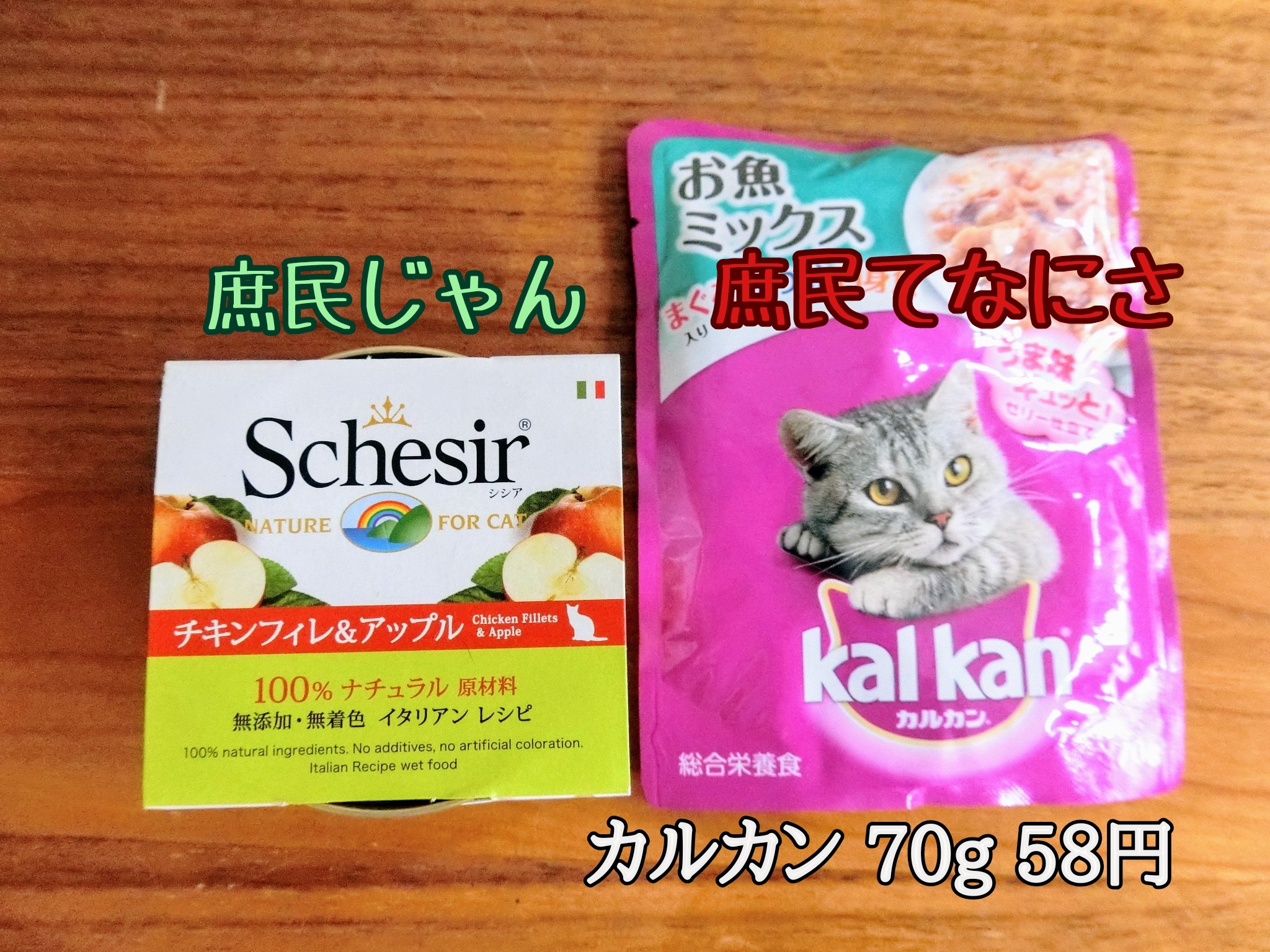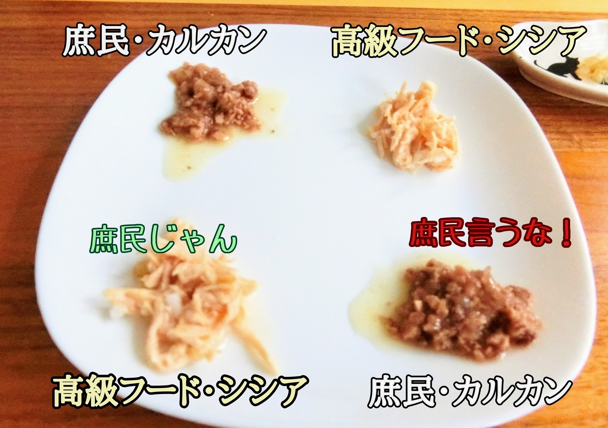 高級フードシシアと、庶民代表カルカンをいっしょにお出しします